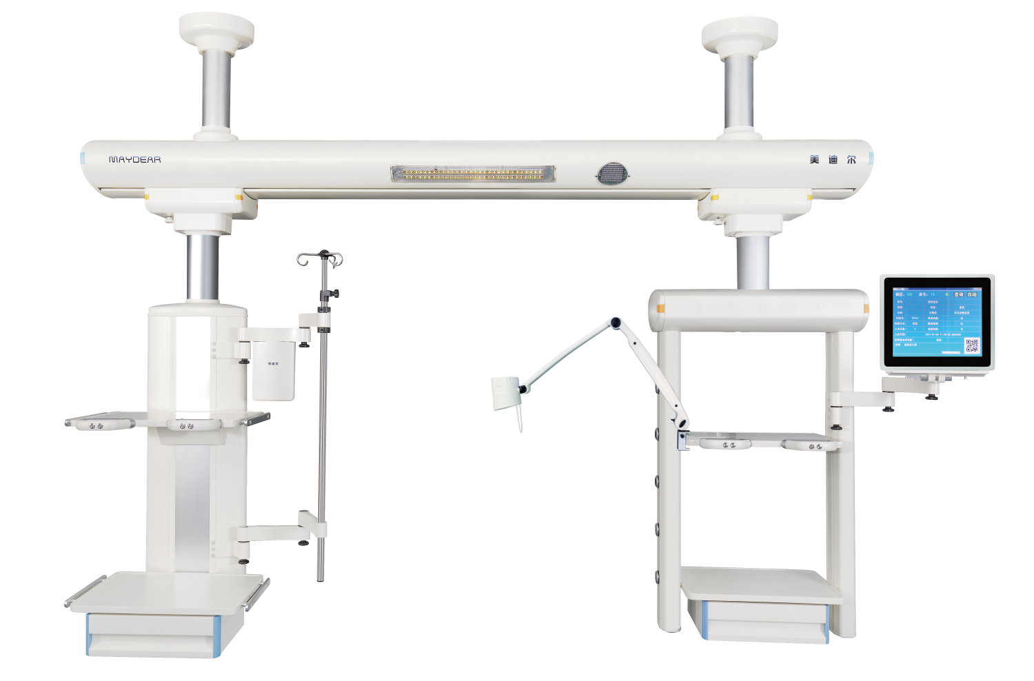 ICU 干濕分離吊橋 適用于醫(yī)院ICU病房,是現(xiàn)代重癥監(jiān)護病房必備的醫(yī)療搶救輔助設(shè)備,主要由橋架,干段和濕段組成。其特點在于合理的干濕分離結(jié)構(gòu),濕段配置升降靈活的輸液架和輸液泵架。干濕段配置有可升降調(diào)節(jié)的醫(yī)療監(jiān)護儀器平臺,在干濕段上分別將氧氣,空氣,吸引,強弱電,網(wǎng)絡(luò)輸入終端配置在醫(yī)護人員抬手可及的塔體上。移動旋轉(zhuǎn)部分采用氣控制動防飄移,桁架中央配置一款環(huán)保,節(jié)能的LED照明治療。為臨床治療提供了照明解決方案,另外還可根據(jù)您的要求選配通信傳呼,監(jiān)控,可視電話,背景音樂以及教學(xué)和遠程會診系統(tǒng)。